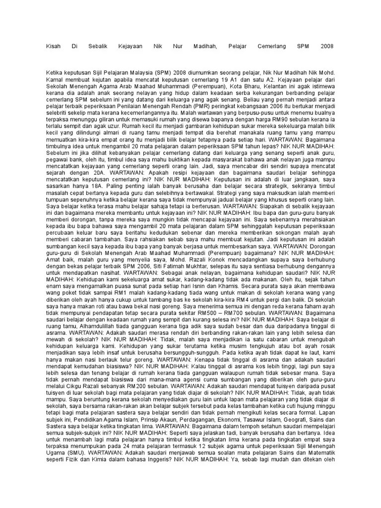 Nik nur madihah nik mohd kamal has 1 book on goodreads with 215 ratings. Nik nur madihah binti nik mohamad kamal (lahir 25 september 1991 di kota bharu, kelantan) adalah pelajar terbaik sijil pelajaran malaysia pada tahun 2008. Nik nur madihah nik mohd kamal merupakan seorang anak nelayan dari kampung parang puting, pengkalan chepa, kelantan. Rahsia pelajar cemerlang spm 2008.